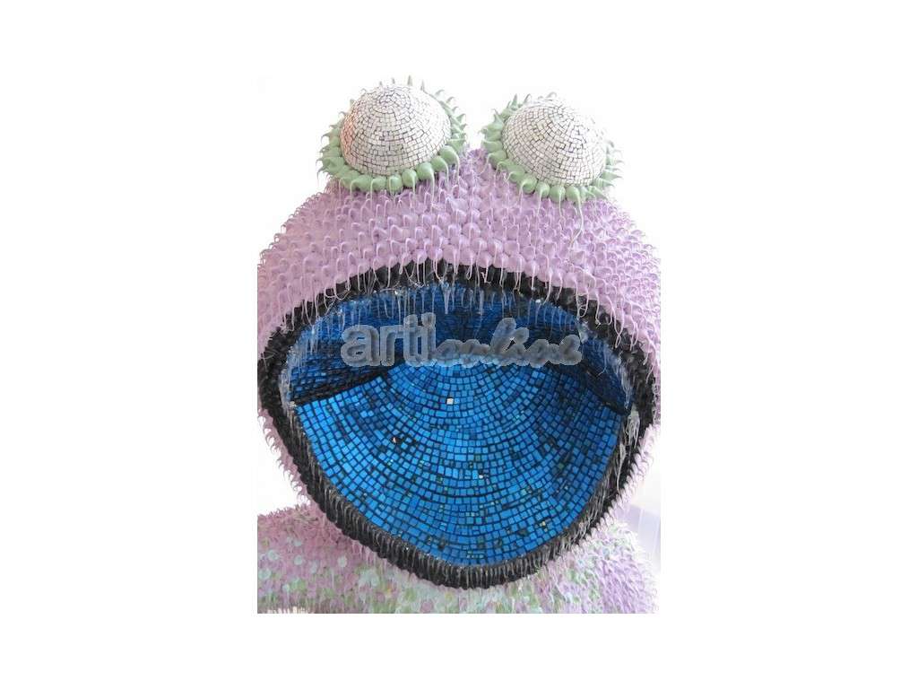 Scultura realizzata in resina e ricoperta a mosaico con tessere e filamenti di silicone.
